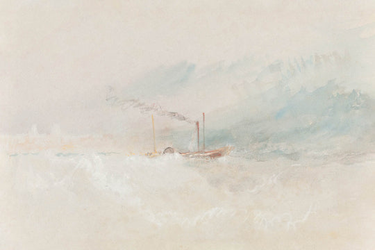 Turner, celebrated as one of the most influential English Romantic artists, was known for his innovative use of color and light. "A Packet Boat off Dover" exemplifies Turner's ability to capture the interplay of the sky and sea, blending hues of white, beige, and deep blues into a composition that's vivid and atmospheric. His techniques for depicting the movement of the clouds and waves continue to mesmerize art enthusiasts, making this print a valuable addition to any collection.