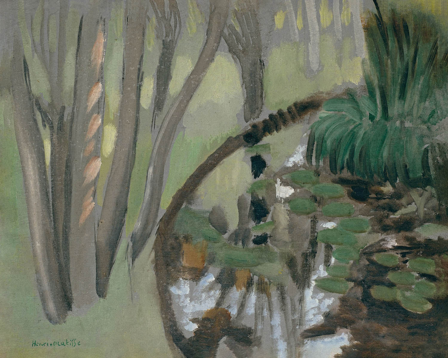 This particular artwork, notable for its calm and harmonious palette, reflects Matisse's adeptness in evoking the tranquility of nature. The interplay of green, brown, and black creates a subtle yet timeless piece that highlights the serene grandeur of a French stream. Its understated elegance and exceptional use of meditative hues make it a compelling addition to any art collection.