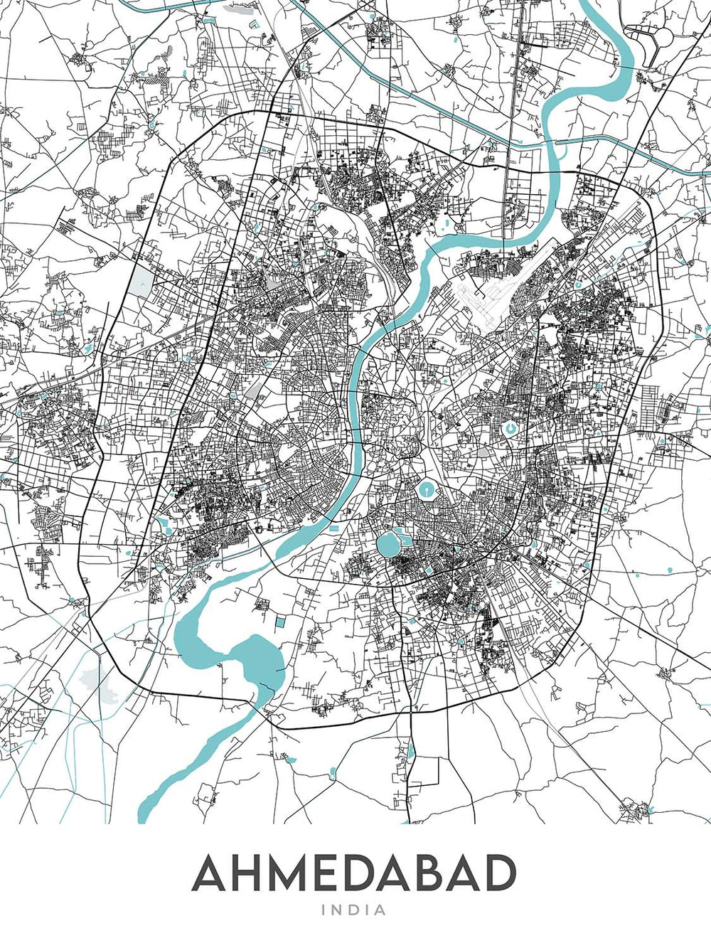 The map of Ahmedabad, crafted with precision by The Unique Maps Co. in 2024, offers a strikingly modern representation of this vibrant Indian city. This meticulously detailed street map captures the essence of Ahmedabad without the clutter of labels, allowing the viewer to appreciate the intricate street patterns and urban landscape in its purest form. Encompassing a diverse range of neighborhoods such as Navrangpura, Ellisbridge, and Paldi, the map provides a comprehensive view of the city's bustling heart and tranquil peripheries. The elegant design invites you to explore the city's rich tapestry, from its bustling markets to its serene lakes, all within a single, captivating frame.