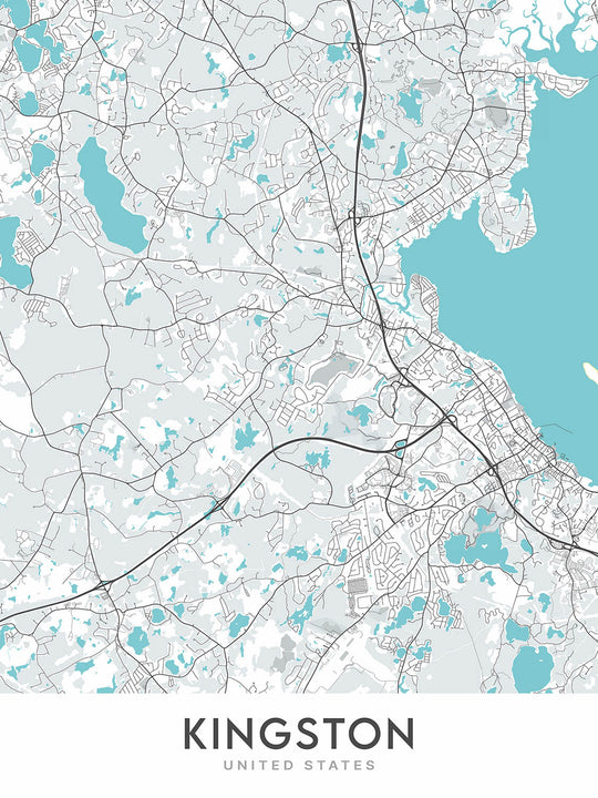 This map of Kingston, Massachusetts, is a beautiful and informative work of art that is perfect for any home or office. The map features a unique color palette and modern design that will complement any décor. This map is more than just a navigational tool; it is a work of art that will add a touch of sophistication to any space.