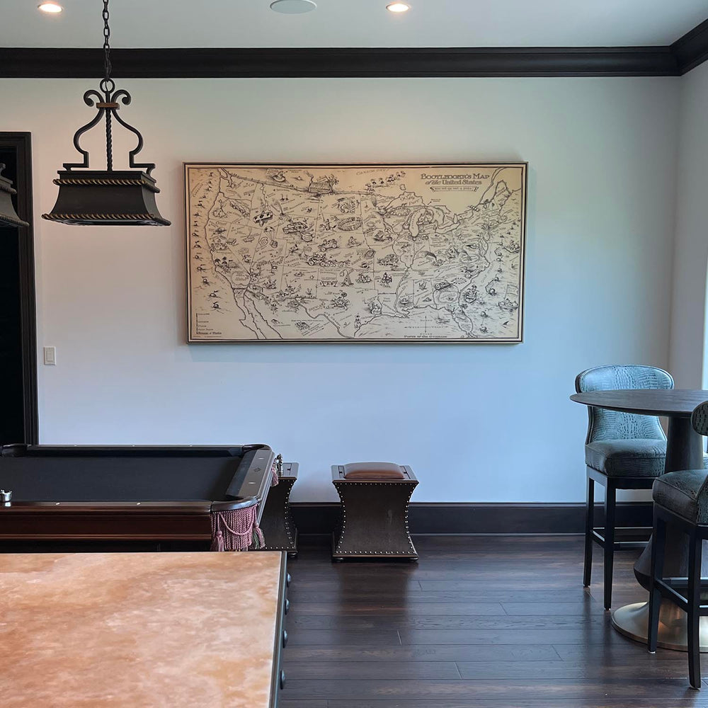 Almost all of my maps and art prints look amazing at large sizes (200cm, 6.5ft+) and I can frame and deliver them to you as well, via special oversized courier. Contact me to discuss your specific needs.