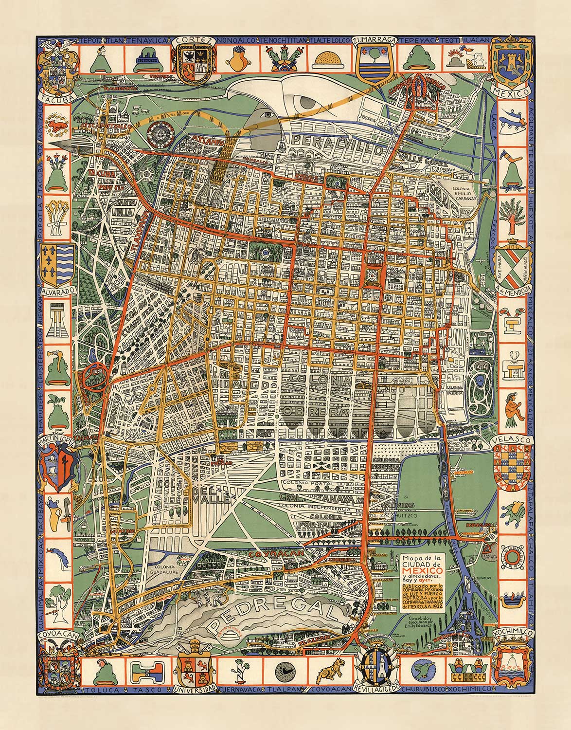 This wonderful old map of Mexico City was originally published in 1932. It was created by Emily Edwards.