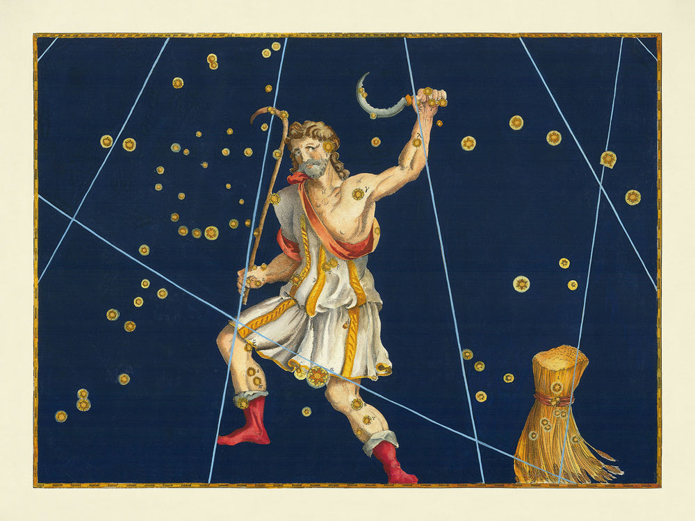 This specific artwork is notable not only for its detailed star positioning but also for its rich historical context. The map of Bootes includes visual storytelling seen through its intricate designs and the illustrious mythological stories surrounding the constellation itself. According to various myths, Bootes could represent a ploughman, a grape grower named Icarius, Arcas, son of Zeus, and even Atlas. Each legend adds layers of depth and intrigue to this celestial chart, making it a conversation piece and a valuable addition to any collection.