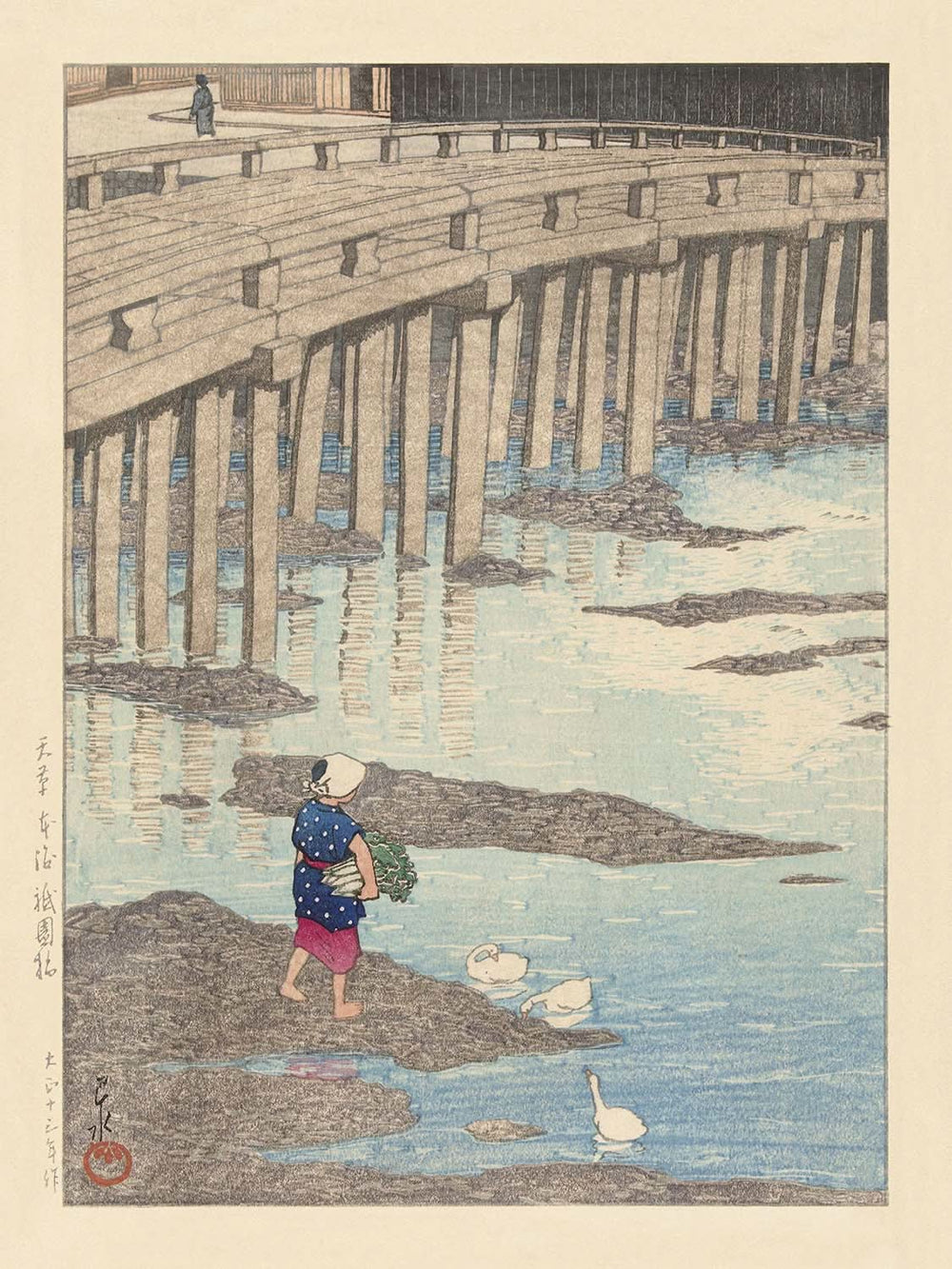 The Gion Bridge in Hondo in Amakusa by Hasui Kawase, 1924