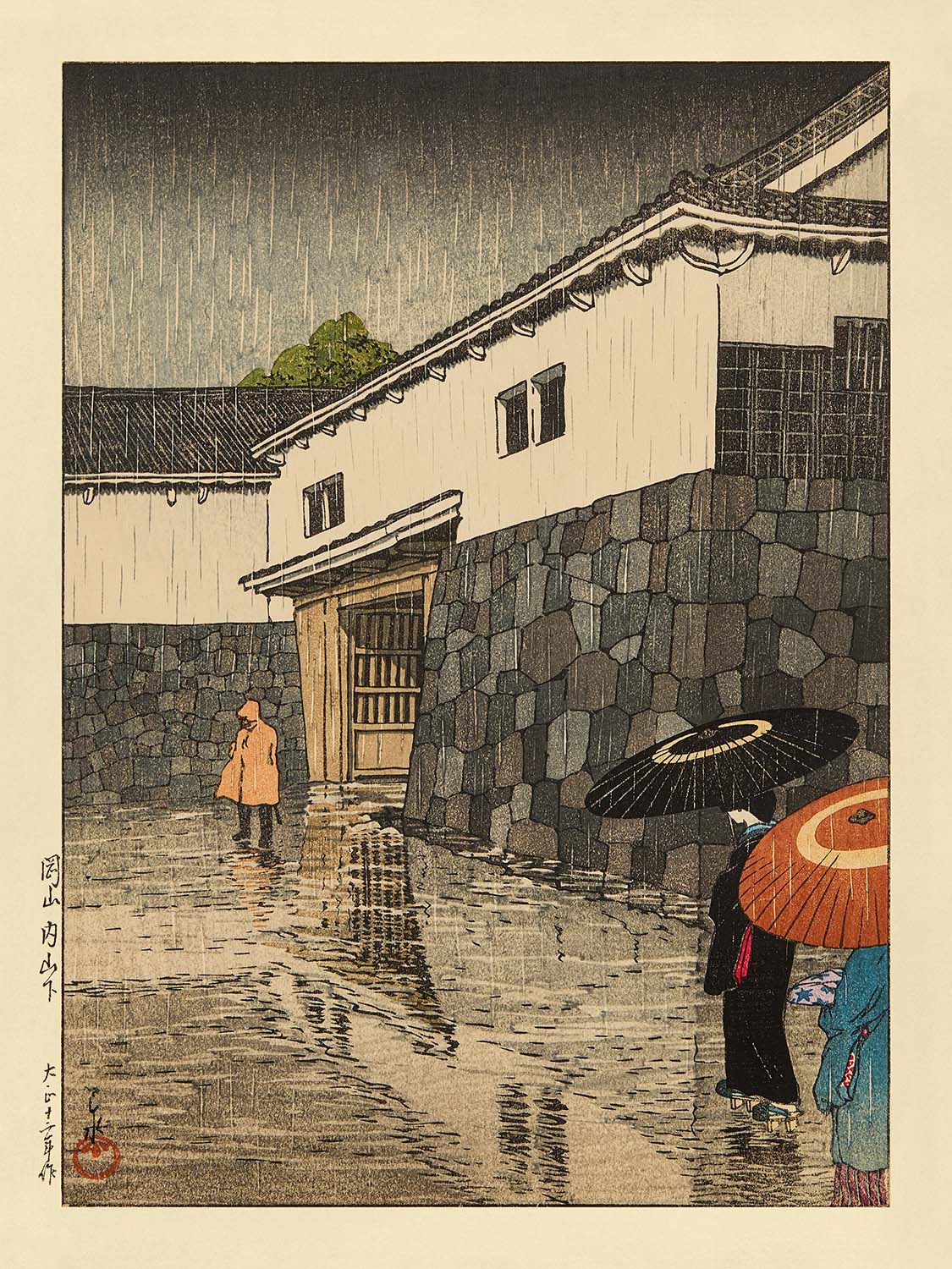 Uchiyamashita in the Rain by Hasui Kawase 1935