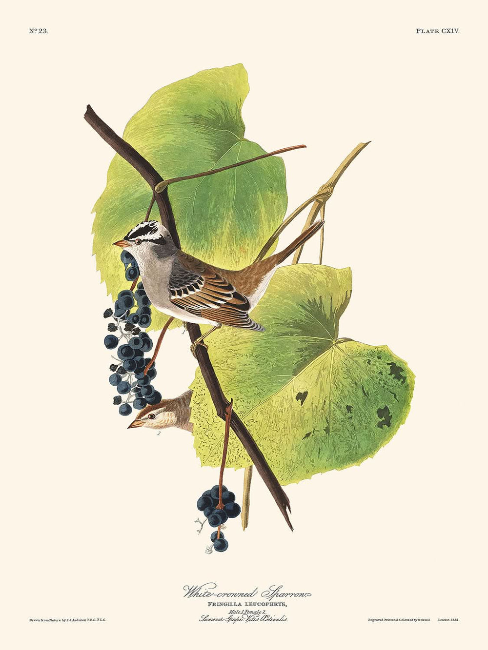 White-crowned Sparrow by John James Audubon, 1827