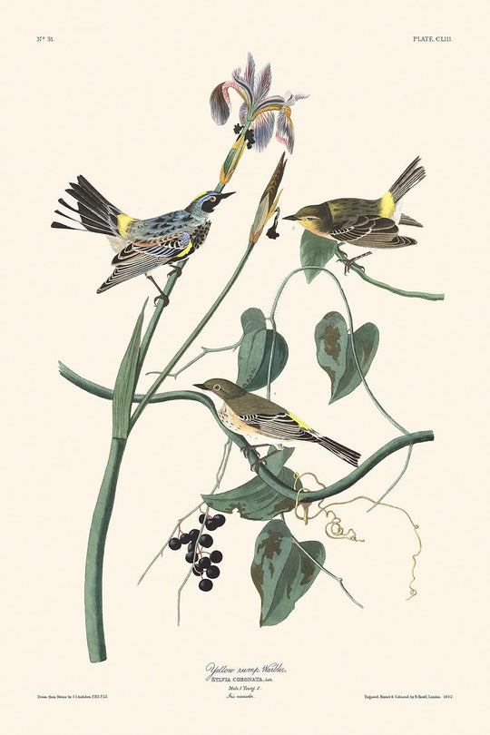 The "Yellow-crown Warbler" illustration, crafted by the acclaimed naturalist and artist John James Audubon in 1827, is a renowned piece from his monumental series, "Birds of America." Audubon’s work captures the rich and intricate details of avian life in North America, showcasing his profound adoration for nature and its inhabitants.
