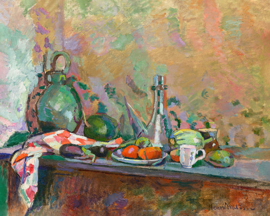 In this piece, Matisse challenges conventional representations of still life, by instilling dynamic energy through his color choices and arrangement of forms. The cohesion of colors and the simplification of shapes invoke a meditative yet vibrant atmosphere, encouraging the viewer to appreciate the deeper rhythmic qualities of everyday objects. Bearing the English title "Still life with cigar, I" as well, this piece adds a touch of European charm to any collection and speaks to aficionados of modern art who admire Matisse's revolutionary approach.