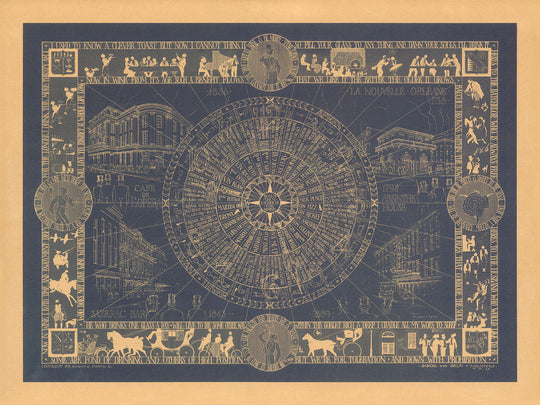 Collins C Diboll was a notable artist known for his ability to capture the essence of an era filled with cultural nuances. Through his lens, this artwork details not only the elegance of New Orleans but also the resilience of its cultural traditions during the prohibition era. Diboll's artwork is particularly notable for his meticulous focus on the vibrant and dynamic lifestyle of the time, reflected in the lively vignettes and the vivid, centred clock illustration that signifies the perennial nature of enjoying a good drink.