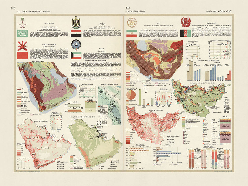 This map is a reproduction of an original map created in 1967 by the Polish Army Topography Service. It is a detailed and informative map of the Arabian Peninsula, with a particular focus on the infographics that provide a wealth of data about the region. The map also includes several small maps and graphics that provide additional information about the Arabian Peninsula.