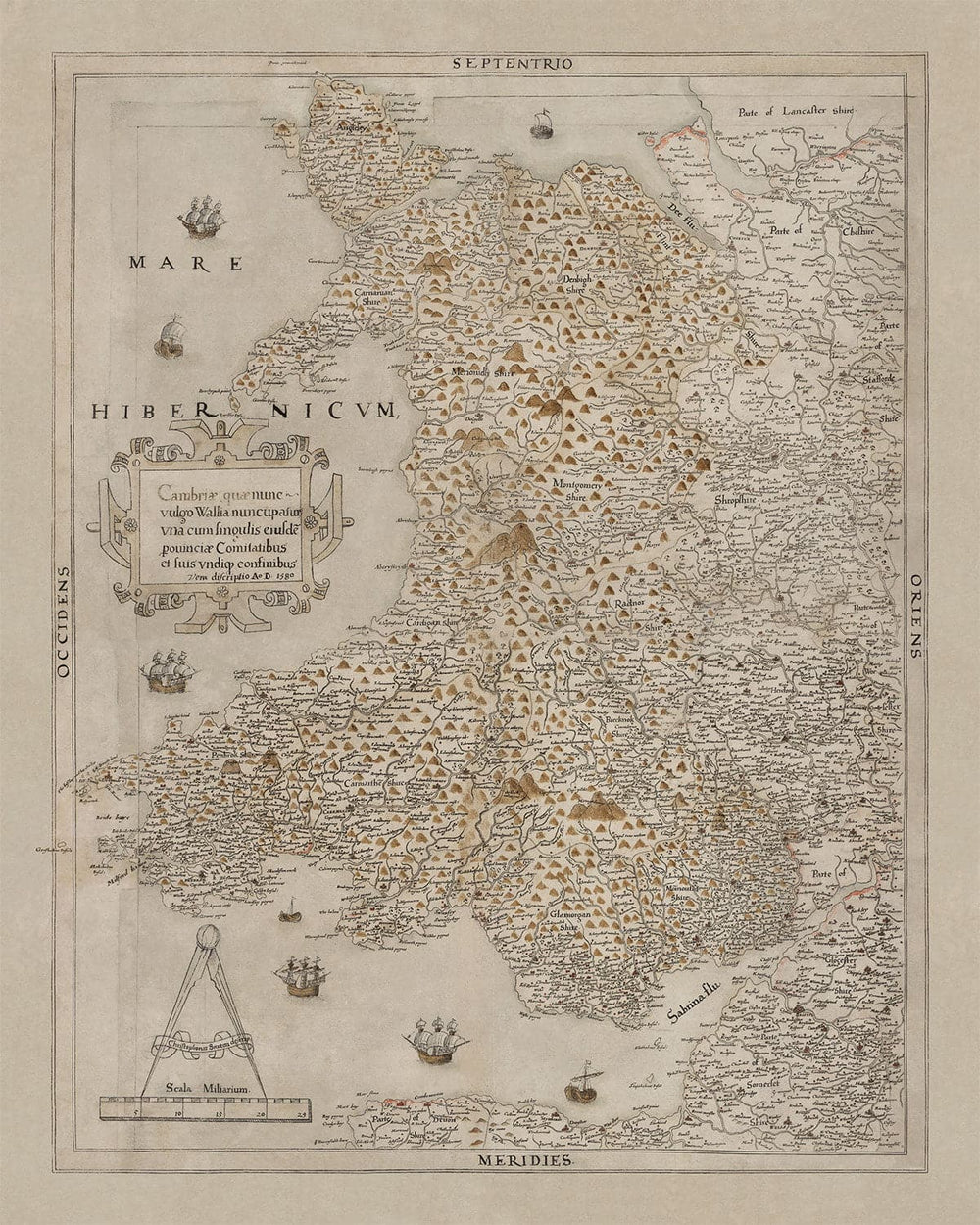 This one-of-a-kind map of Wales, compiled in 1580 by the father of British cartography Christopher Saxton, was the first accurate map of many parts of Wales.