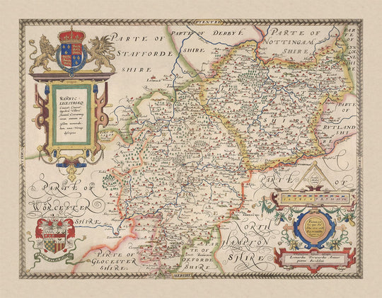Created almost 450 years ago, this is the first ever printed map of the counties of Warwickshire and Leicestershire published by Christopher Saxton, the father of British cartography. My prints of this map are based on one of the finest examples of one of the best and rarest maps of Warwickshire and Leicester.
