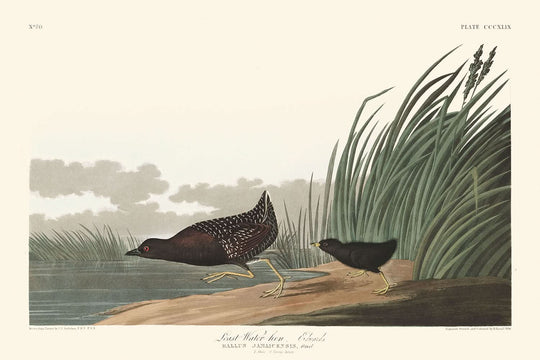 The skilful use of colors and textures brings life to the Least Water-hen, displaying shades of dark purplish-grey and chestnut. Such a palette, combined with Audubon's keen understanding of the bird's nuanced form, encourages viewers to connect deeply with nature’s elusive beauty. This print serves not just as an artwork but as a window into the mesmerizing world of 19th-century natural history.