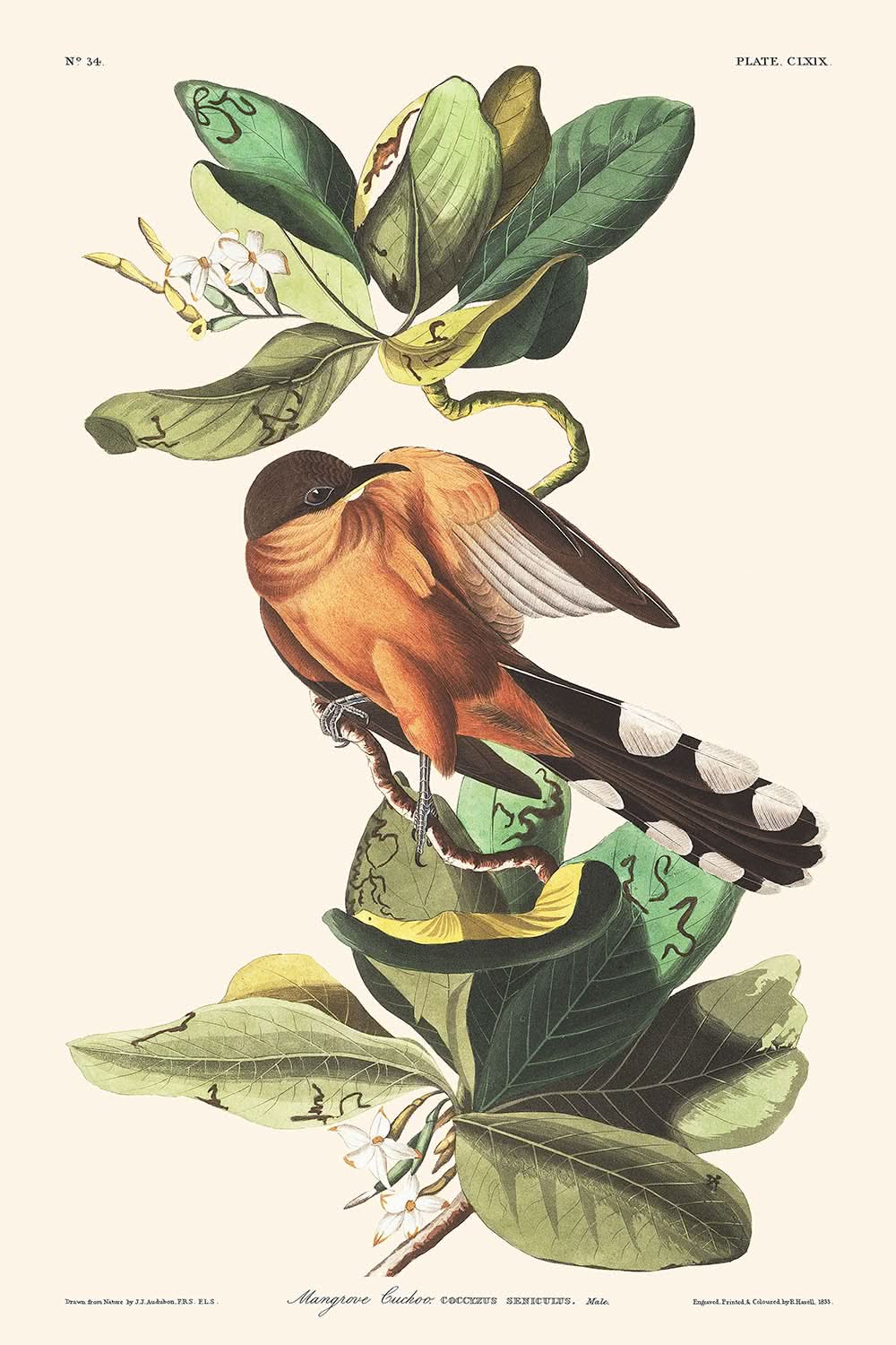 Whether you're seeking to enrich your home with an elegant depiction of natural beauty or searching for a thoughtful gift, this fine art print of the "Mangrove Cuckoo" is perfect for occasions such as birthdays, Christmas, or Father’s Day. It's an ideal present for those who appreciate the intricate wonders of nature and the enduring legacy of Audubon’s artistic endeavors.