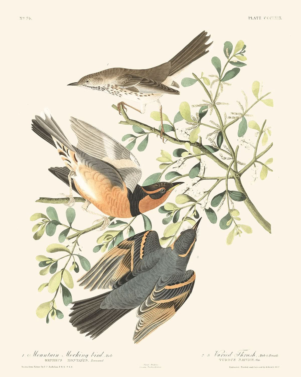 Mountain Mockingbird and Varied Thrush by John James Audubon, 1827