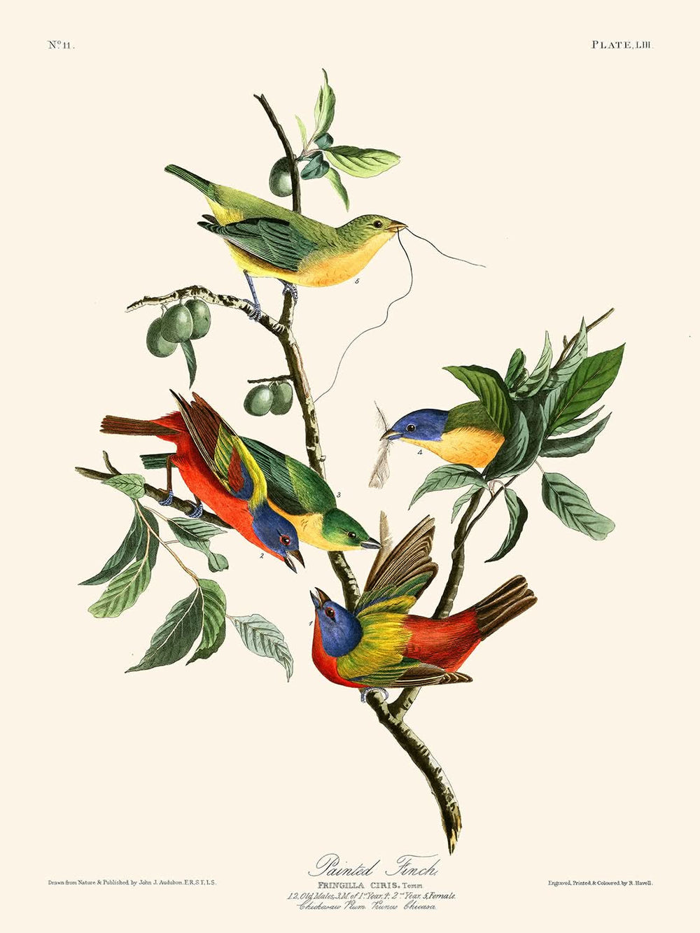 Painted Finch (Plate 53), created by the renowned naturalist and artist John James Audubon, is a captivating piece from his seminal collection, The Birds of America. Published in 1827, this artwork represents one of the many definitive illustrations Audubon created to celebrate the avian diversity of North America.