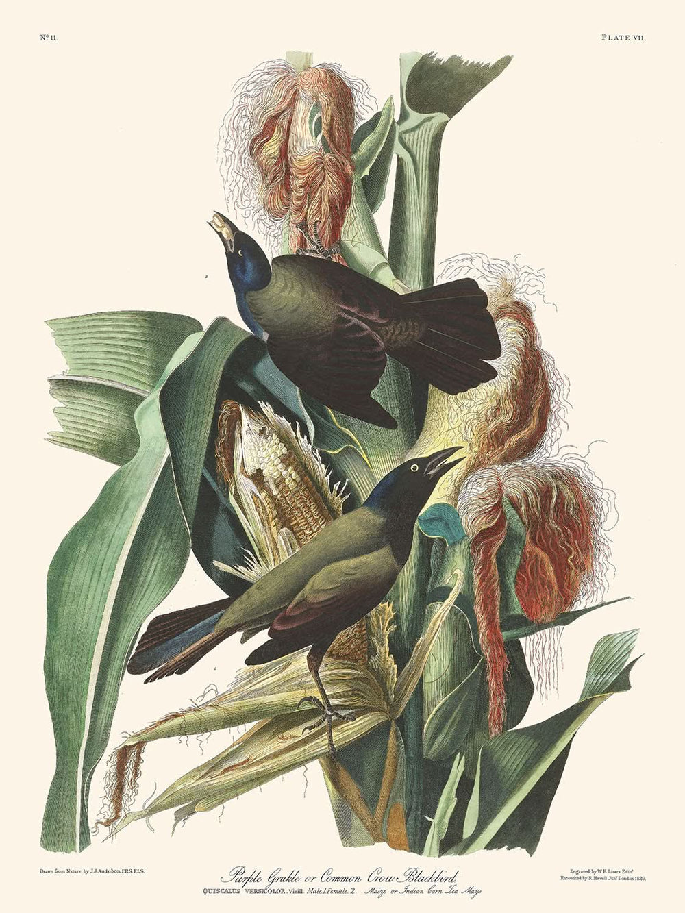 Owning a print of the Purple Grakle can bring a unique touch of both art and history to a variety of spaces, reflecting not only Audubon’s artistic brilliance but also an era of burgeoning natural exploration. The scientific name noted for this bird is Quiscalus versicolor, offering insight into its classification and historical references.