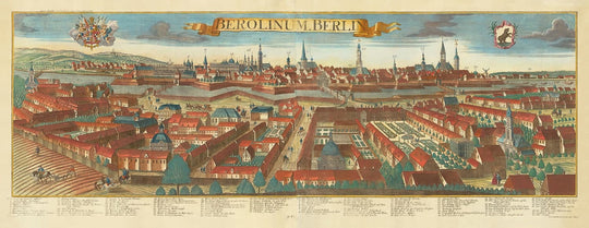 Ancient Map of Berlin, 1760 by Balthasar Probst: Old Panoramic Chart with Coat of Arms