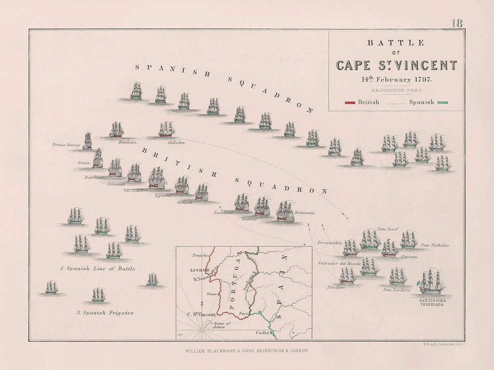 Battle of Cape St. Vincent by AK Johnston, 1797: Anglo-Spanish War