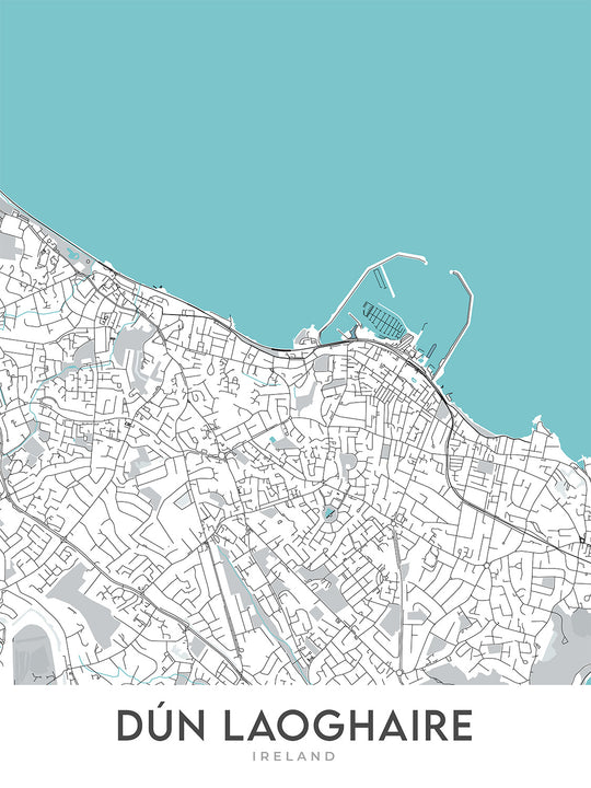 Modern City Map of Dún Laoghaire, Ireland: Dún Laoghaire Harbour, Sandycove, Dalkey Island, Killiney Hill, N11