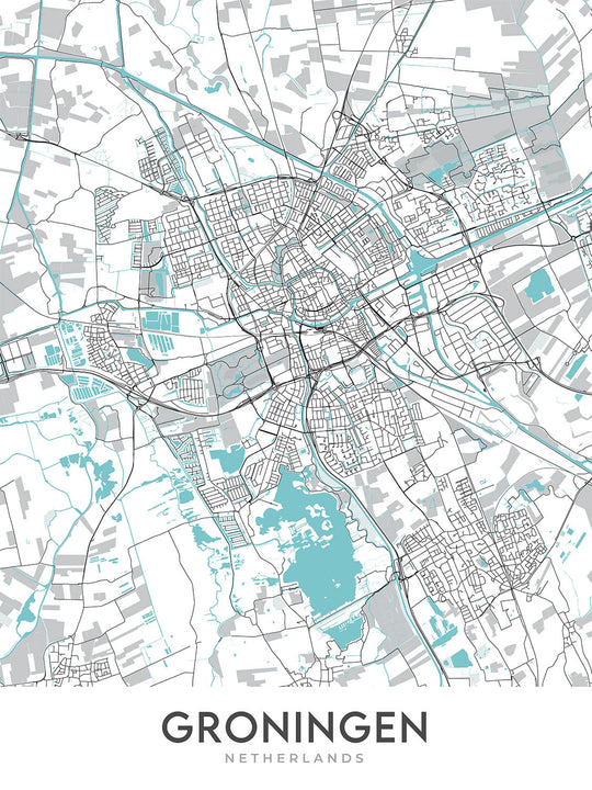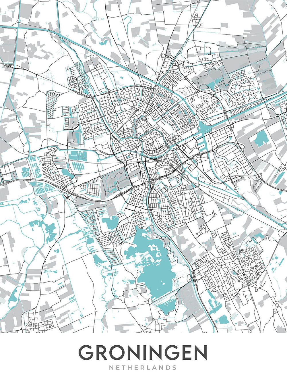 Modern City Map of Groningen, Netherlands: University, Museum, Tower, Canal, Park