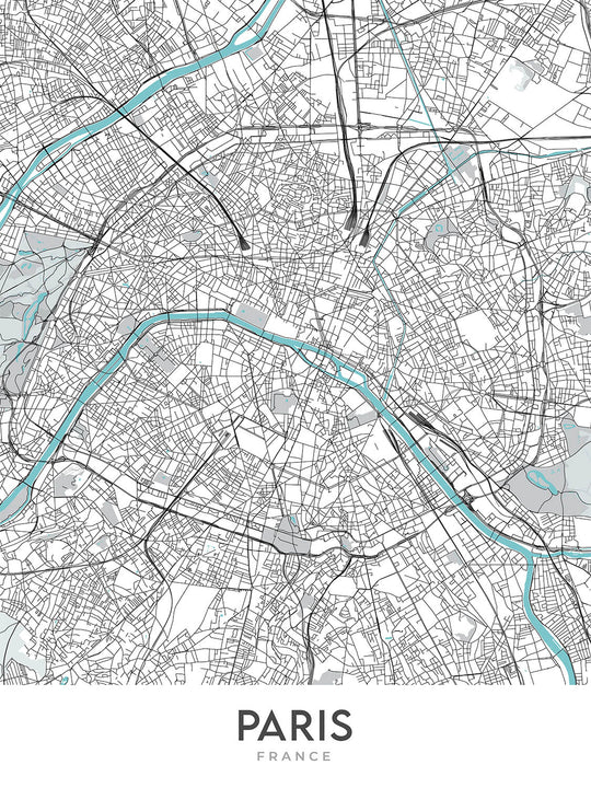 This map of Paris is a beautiful and stylish way to add a touch of modern sophistication to any home or office. The map is an original creation by The Unique Maps Co., and features unique cartography, modern design, and a unique color palette. The map covers a rectangular area that encompasses many of the city's most famous neighborhoods, and is perfect for anyone who loves Paris or appreciates beautiful maps.