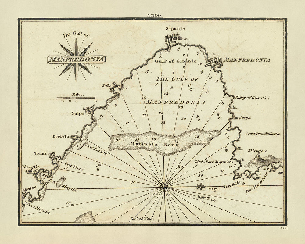This map of the "Gulf of Manfredonia" is more than a navigational tool; it is a portal to the past, inviting us to explore the rich maritime heritage of the Mediterranean through the lens of English cartographic excellence.
