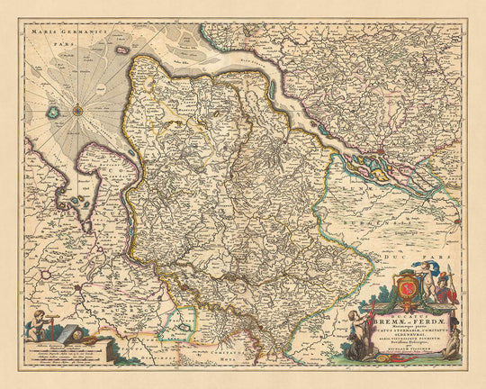 Old Map of Bremen and Verden: Visscher, 1690