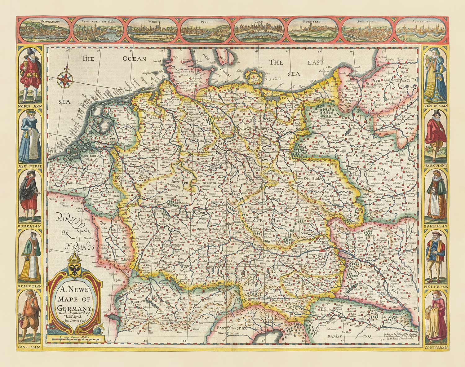Old Map of Germany by John Speed, 1627: Holy Roman Empire, German Empire