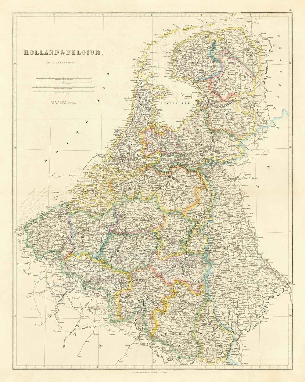 A gorgeous map of Belgium and Holland, originally published in 1858 by probably the most sought after mapmaker of the mid-19th century, John Arrowsmith.