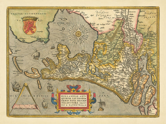 Old Map of Holland and Utrecht, 1595 by Abraham Ortelius: Amsterdam, Rotterdam, Hague, Utrecht