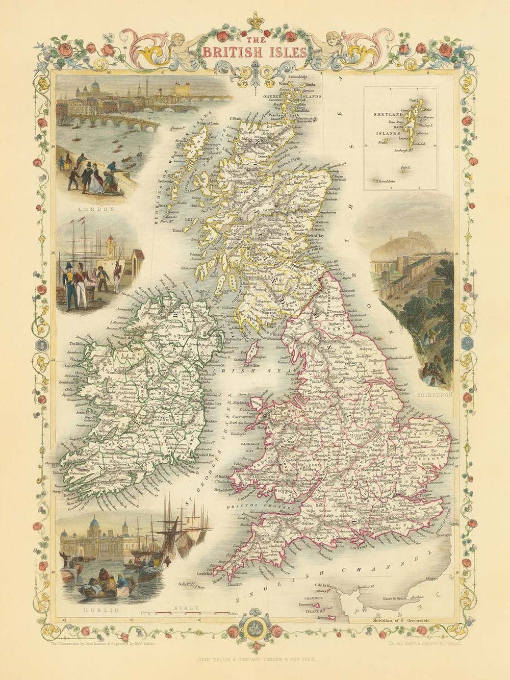 Old Map of the British Isles by Tallis, 1851: The Last Great Decorative Map