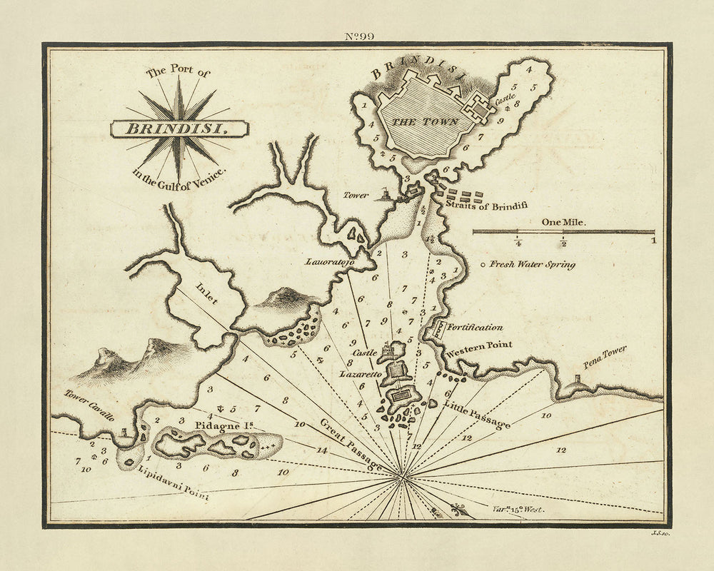 - The map shows the Port of Brindisi, in the Gulf of Venice (now the Adriatic Sea).