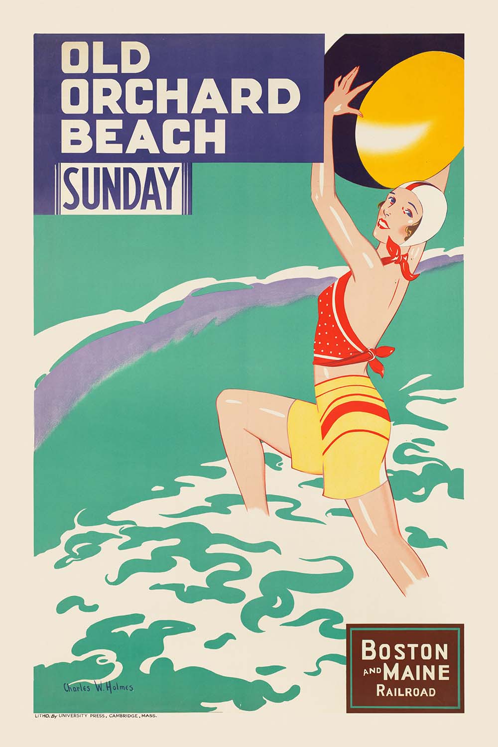 Boston & Maine Railroad Travel Poster: Old Orchard Beach Sunday by Charles W. Holmes