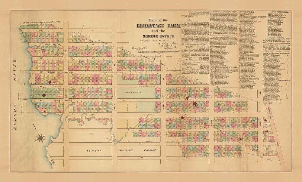 This map covers what is now known as Hell's Kitchen (or Clinton) and parts of West Midtown in New York City. But, if that wasn't interesting enough, the map also shows the farmland that Hell's Kitchen was built upon.It is a little hard to believe today, but at the start of the 19th century most of Manhattan was still farmland. Here, the map shows that Hell's Kitchen used to be the Hermitage Farm and Norton Estate.