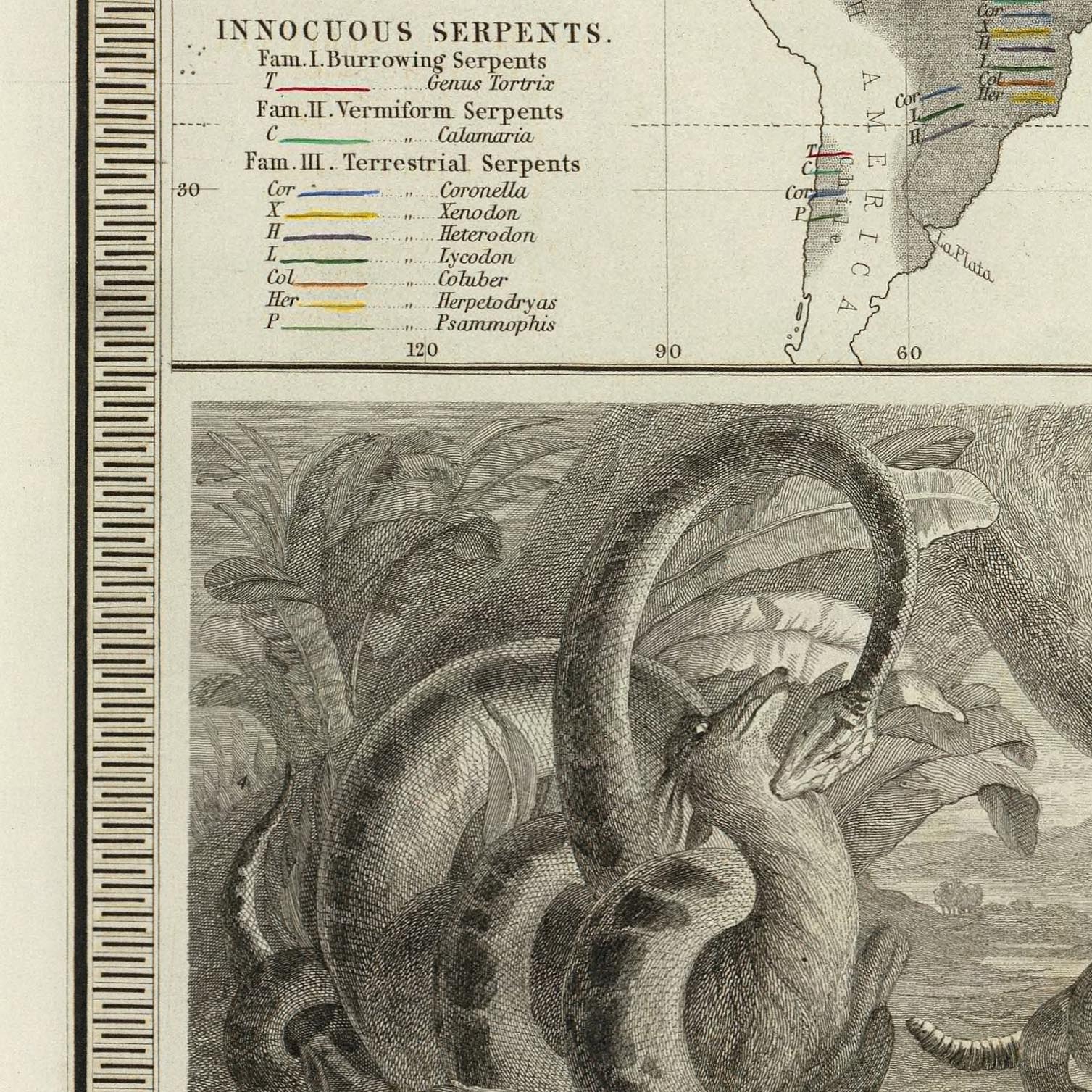 Old World Map of Reptile Distribution by Johnston, 1856: Snakes, Lizards, and Other Reptile Illustrations