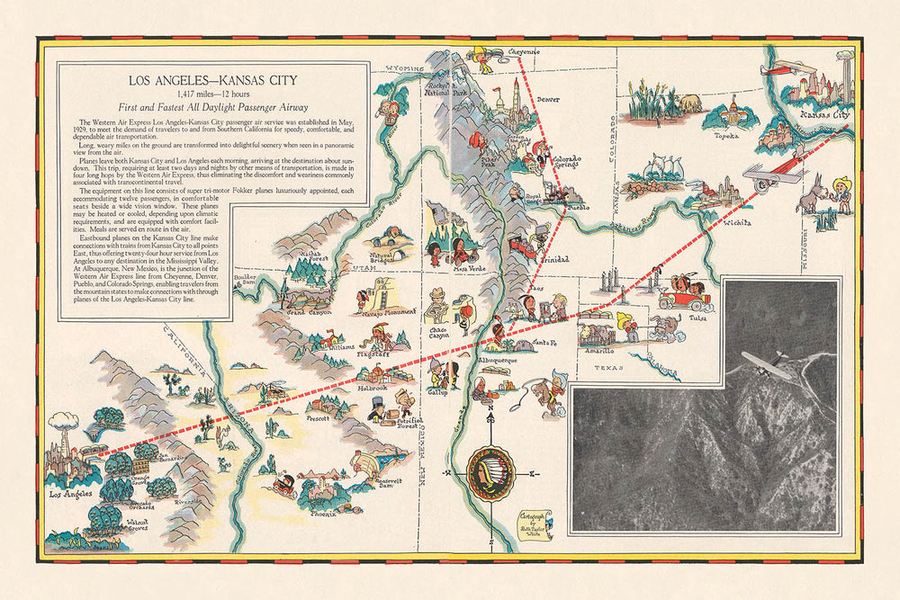 - Produced to illustrate and promote the inaugural passenger air routes between Los Angeles and Kansas City.