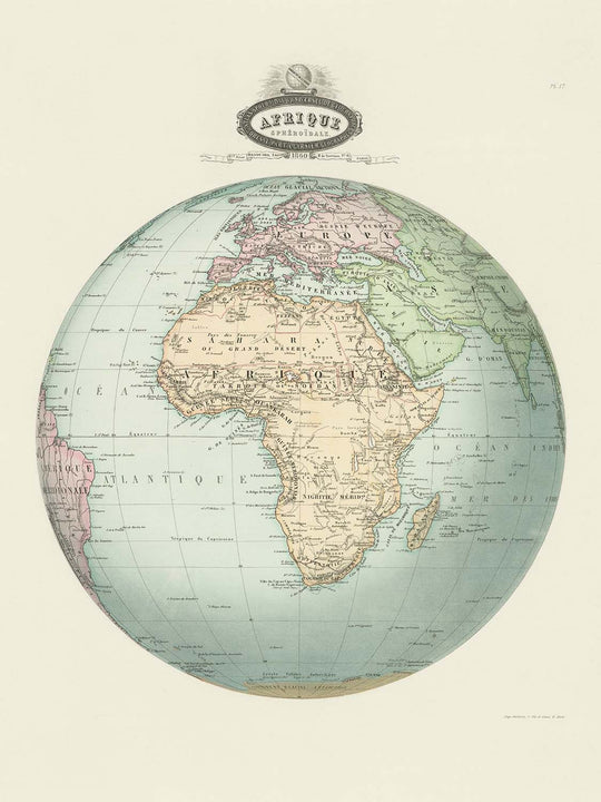 Old Spherical Map of Africa by Garnier, 1860