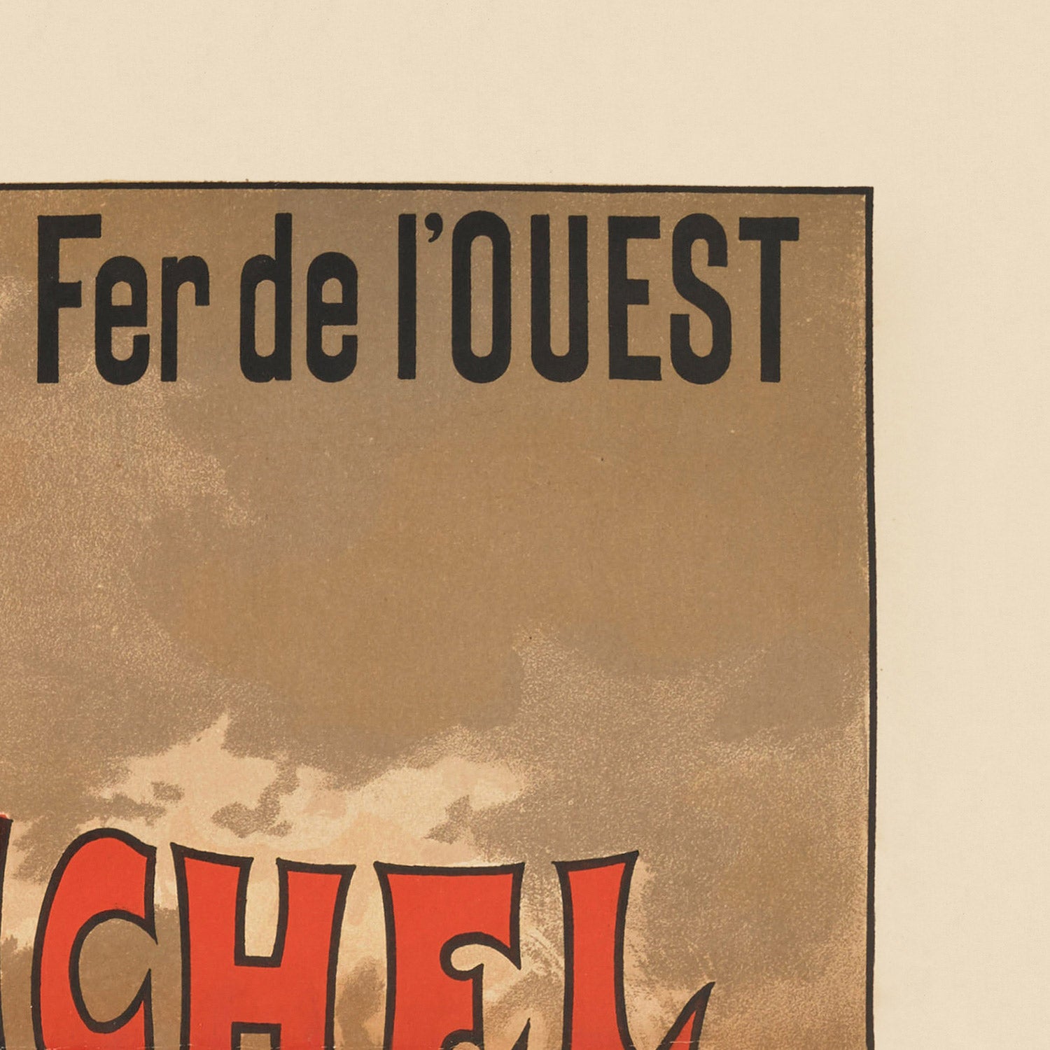 The subject of this poster needs little introduction: Mont-Saint-Michel, the UNESCO-listed island sanctuary whose medieval abbey has drawn pilgrims and wanderers for centuries. By the 1890s, improved rail links made day-trips from Paris and the northern cities newly possible. Posters like this one advertised the romance and ease of such excursions, encouraging visitors to time their visits with the tides and savor the spectacle of the bay, the causeway, and the cloistered heights of the abbey.