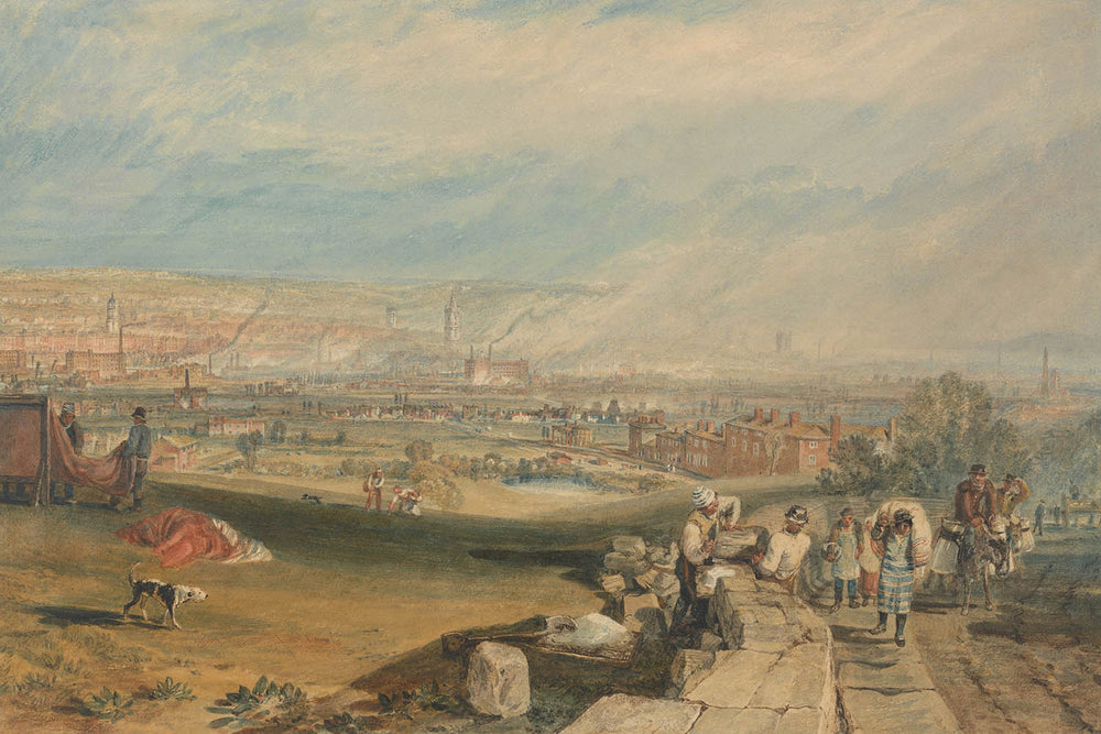 Turner is celebrated globally for his revolutionary approach to capturing light and atmosphere, which deeply influenced the Impressionist movement. A master of both watercolour and oil, Turner’s work encapsulates a transformative period in art history. "Leeds" is notable for its breathtaking use of yellow, playing with light and shadow to evoke an otherworldly feel that envelops viewers in its radiant glow.