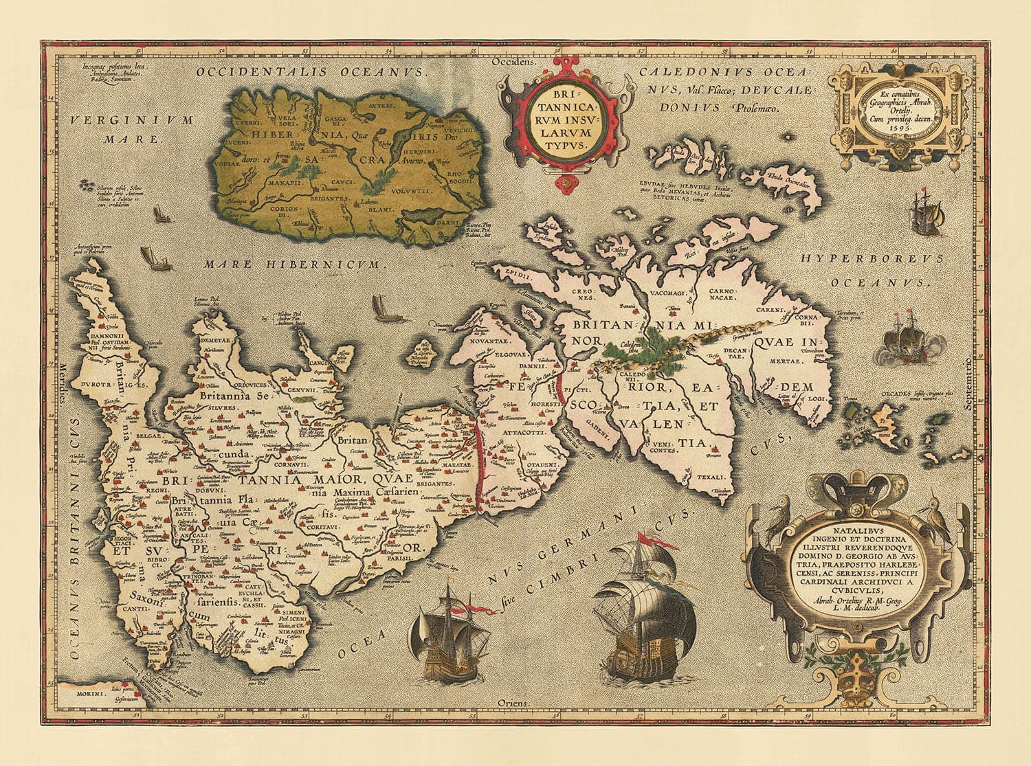 Old Map of British Isles by Abraham Ortelius, 1595: England, Ireland, Wales, Scotland