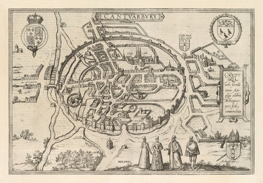 Published in 1588 by Georg Braun and Frans Hogenberg, this is probably the first (and rarest) printed map of Canterbury. If Shakespeare visited Canterbury, this is what it would've looked like.