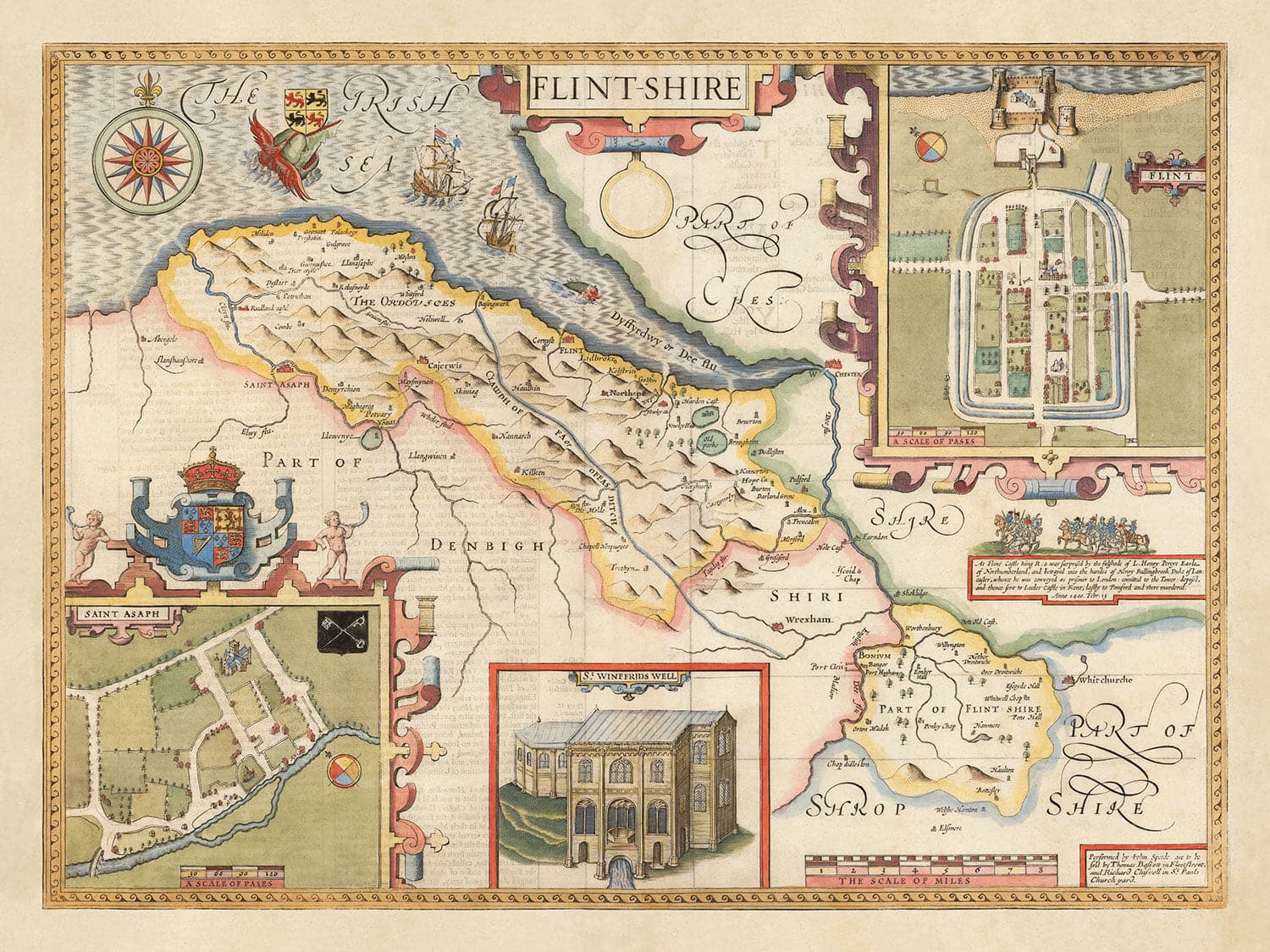 In the top right is a detailed engraving of Flint, the county town of Flintshire.