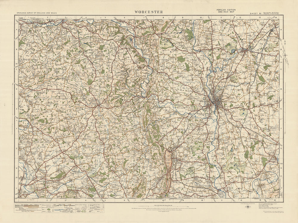 Old Ordnance Survey Map, Sheet 81: Worcester, 1925: Droitwich Spa, Bromyard, Tenbury Wells, Pershore, Malvern Hills AONB