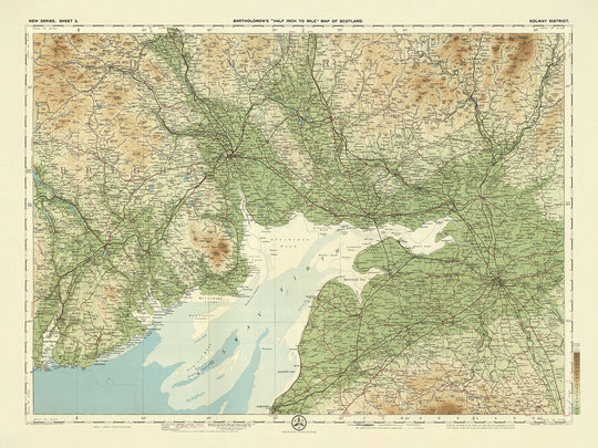 Cities and towns such as Dumfries, Annan, Carlisle, and Keswick are meticulously marked, providing a comprehensive overview of the human settlements within the region. This map not only serves as a practical guide for travelers and historians but also as a testament to Bartholomew's cartographic prowess. The combination of detailed political boundaries, physical landscapes, and historical landmarks makes Sheet 2 - Solway District a valuable and captivating addition to any collection of antique maps.