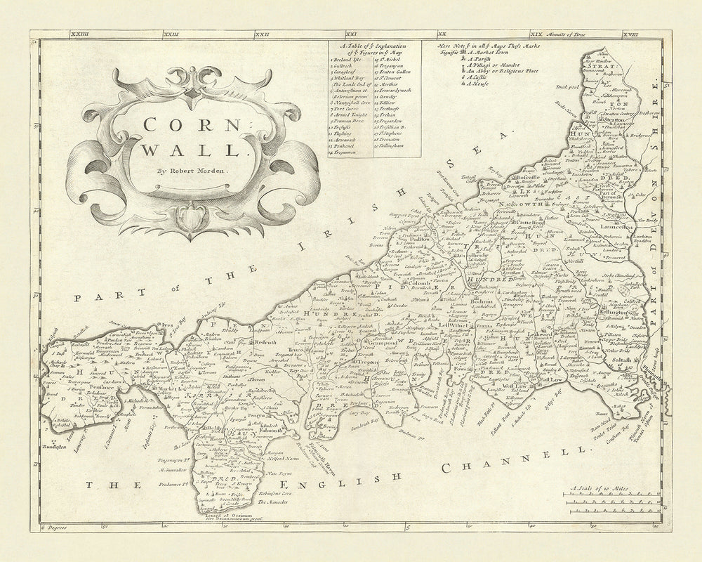 Robert Morden's "Cornwall" map is not just a piece of cartographic art; it is a window into the past. It captures the essence of Cornwall's landscape and its historical significance, making it a cherished addition to any collection. Whether you are a history enthusiast, a lover of fine maps, or someone with a deep appreciation for Cornwall's heritage, this map offers a unique and captivating perspective on one of England's most enchanting regions.