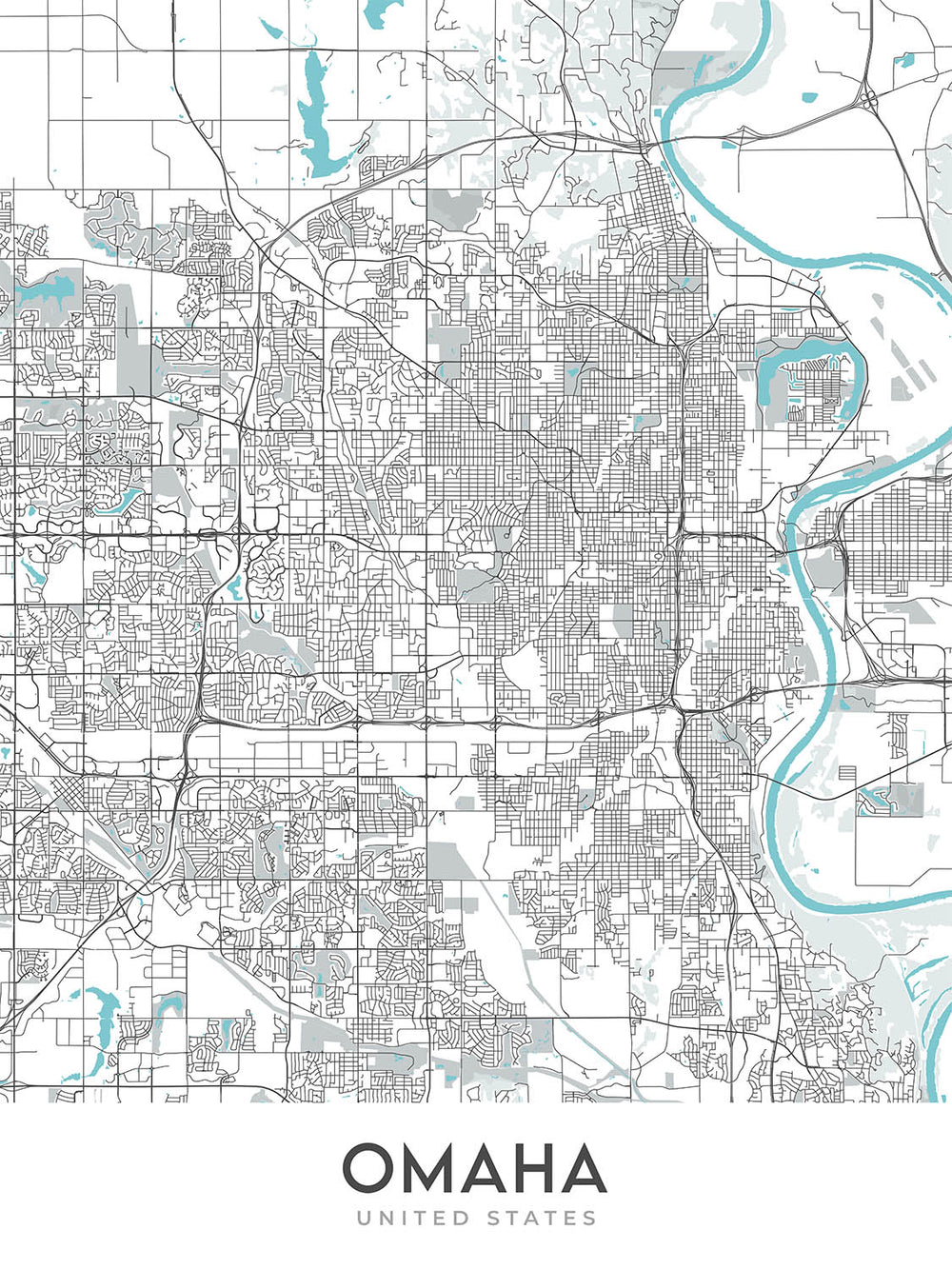 This map of Omaha is a must-have for anyone who loves this vibrant city. The map is an original creation by The Unique Maps Co., and it features a unique and modern design that will add a touch of style to any home or office. The map is printed on high-quality paper and is available in a variety of sizes to suit your needs.