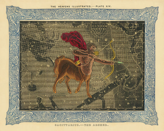 We proudly offer an exceptionally high-quality fine art print of "Sagittarius, The Archer," meticulously restored and prepared by The Unique Maps Co. Each piece is printed on gorgeously thick archival matte paper, ensuring the print remains vibrant and unblemished for decades to come. Additionally, you can personalise and customise this artwork to make it uniquely yours.