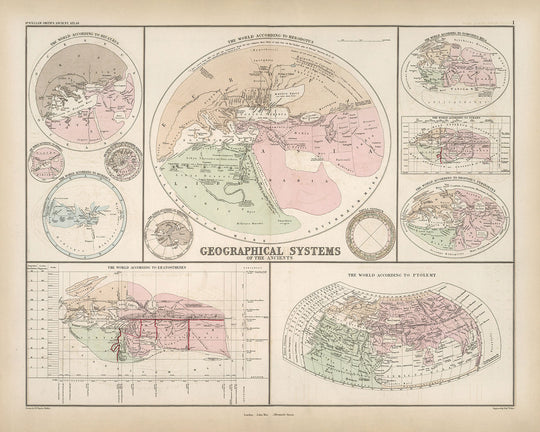 Ancient Geographical Systems by William Smith in 1874: Herodotus, Ptolemy, Hecataeus, Eratosthenes World Maps