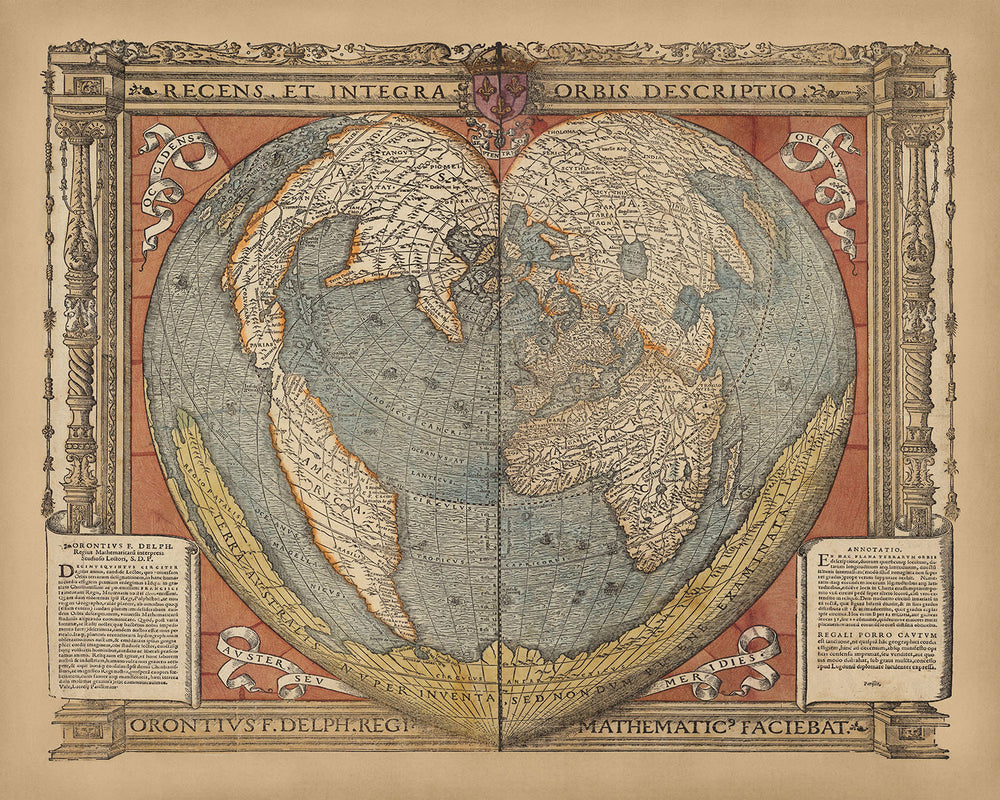- Cartographic Innovation: The heart-shaped projection is a notable innovation in the history of cartography.